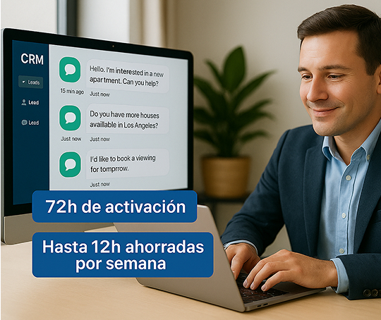 Automatiza tu captación y seguimiento con IA que responde al instante, califica contactos y trabaja mientras tú estás vendiendo.